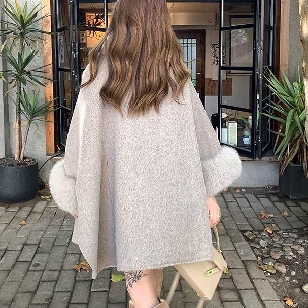ふわふわのフェイクファーが魅力のアウター ミディアム丈コート。