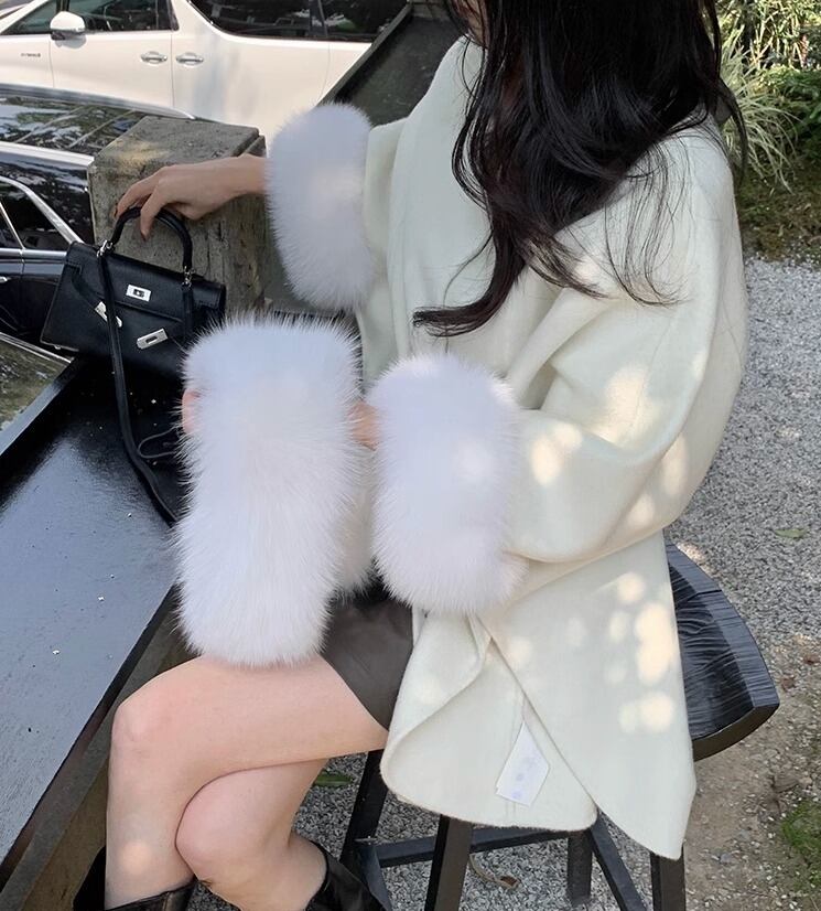 取り外し可能なファー付きで、シンプルな無地デザインながらも上品さと個性を演出する一着です。