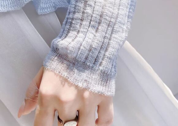 Vネックデザインで顔まわりをすっきり見せ、華奢見え効果も◎。