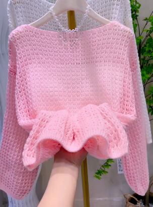 軽やかな薄手ニットが魅力のトップス。
