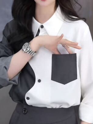 バイカラーの配色が洗練された印象を与える長袖シャツ。