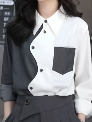 レディース トップス シャツ 普通丈 長袖 襟付き 前開き ボタン バイカラー シンプル カジュアル おしゃれ こなれ感 ラフ 個性的 クール モード系 モダン 主役級 存在感 かっちり 都会的 ベーシック ナチュラル シック スタイリッシュ 無地 春 秋 デート お出かけ 女子会 ショッピング カフェ モノトーン 普段使い 着回し モテ トレンド 流行 インスタ映え 定番 スタイルアップ S M L XL ゆったり サイズ豊富 ホワイト グレー ベーシックカラー 大人カラー