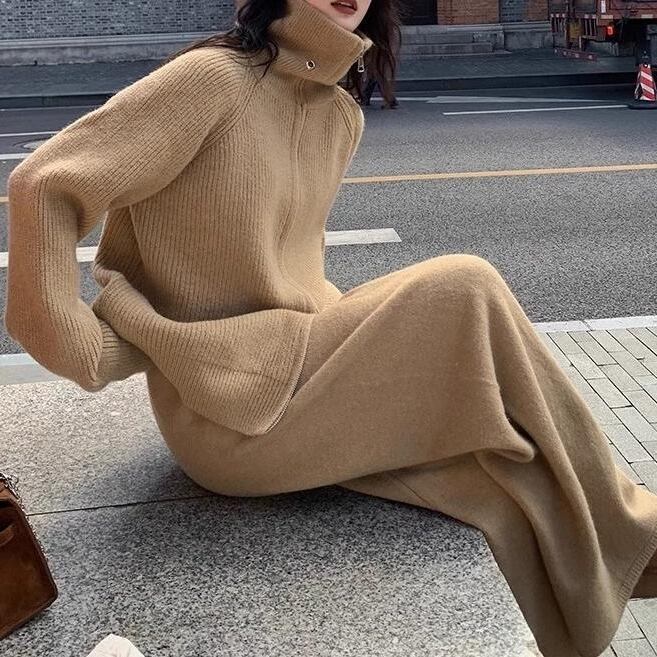2点セット セットアップ トップス 長袖 ハイネック 前開き ダブルジップ ミディアム丈 ロングパンツ ウエストゴム ポケット 可愛い かわいい 大人可愛い きれいめ シンプル 上品 おしゃれ レトロ かっこいい カジュアル こなれ感 個性的 主役級 存在感 抜け感 ベーシック ナチュラル メンズライク スポーティー 無地 女性用 レディース ママ OL 通勤 学生 通学 デート お出かけ お泊まり 女子会 旅行 アウトドア カフェ ショッピング 普段使い デイリー イベント 着回し 重ね着 ワンサイズ