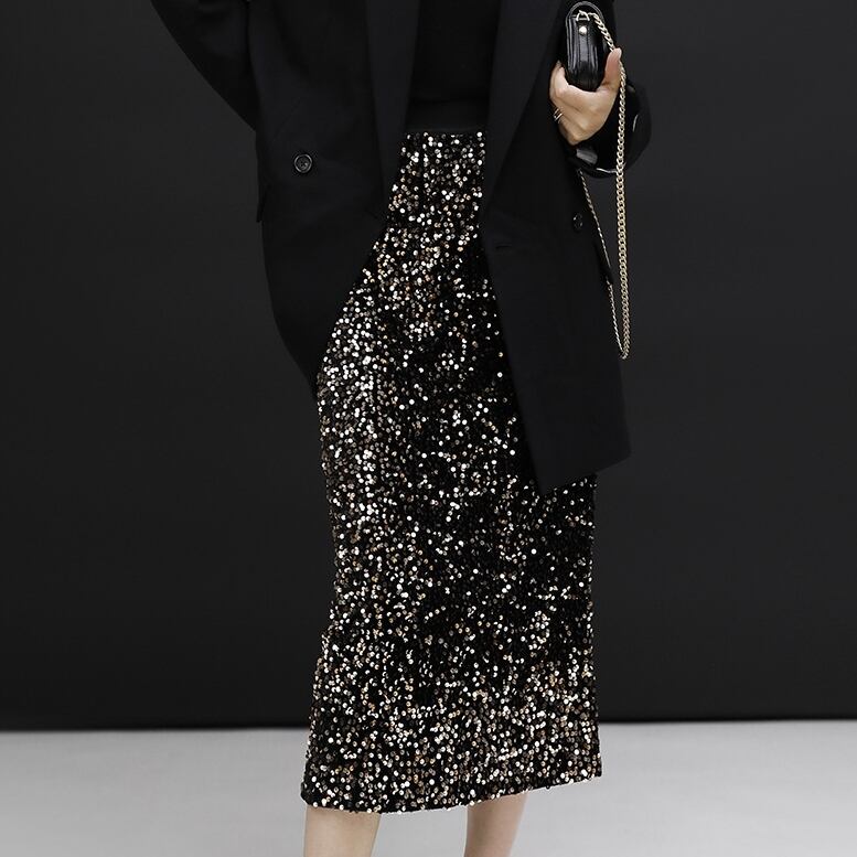 ボトムス ロングスカート ストレート ハイウエスト スパンコール キラキラ ロング丈 可愛い かわいい 大人可愛い きれいめ シンプル 上品 おしゃれ レトロ かっこいい カジュアル こなれ感 個性的 主役級 存在感 抜け感 オールシーズン ナチュラル ベーシック エレガント 無地 女性用 レディース ママ OL 通勤 学生 通学 デート お出かけ お泊まり 女子会 旅行 休日 カフェ ショッピング ディナー コンパ 普段使い デイリー イベント 着回し 重ね着 脚長 S M L トレンド モテ