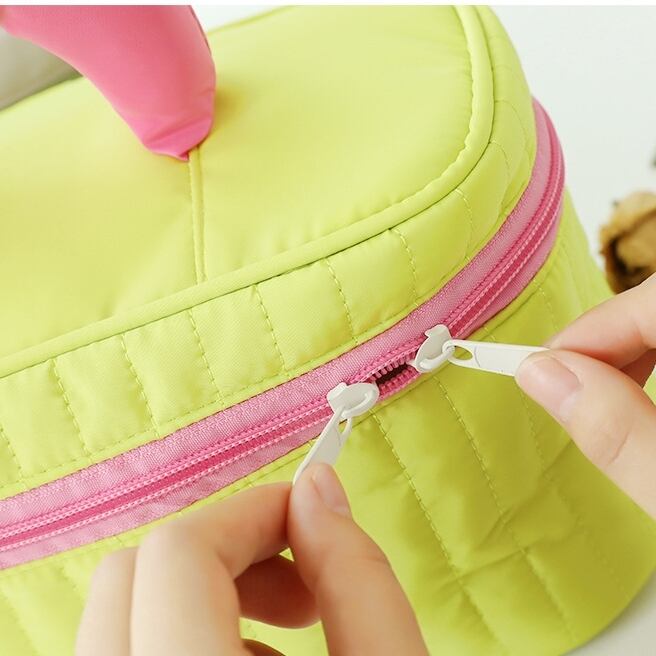 コンパクトなラウンドファスナー仕様で、化粧品や小物をスッキリ収納できます。