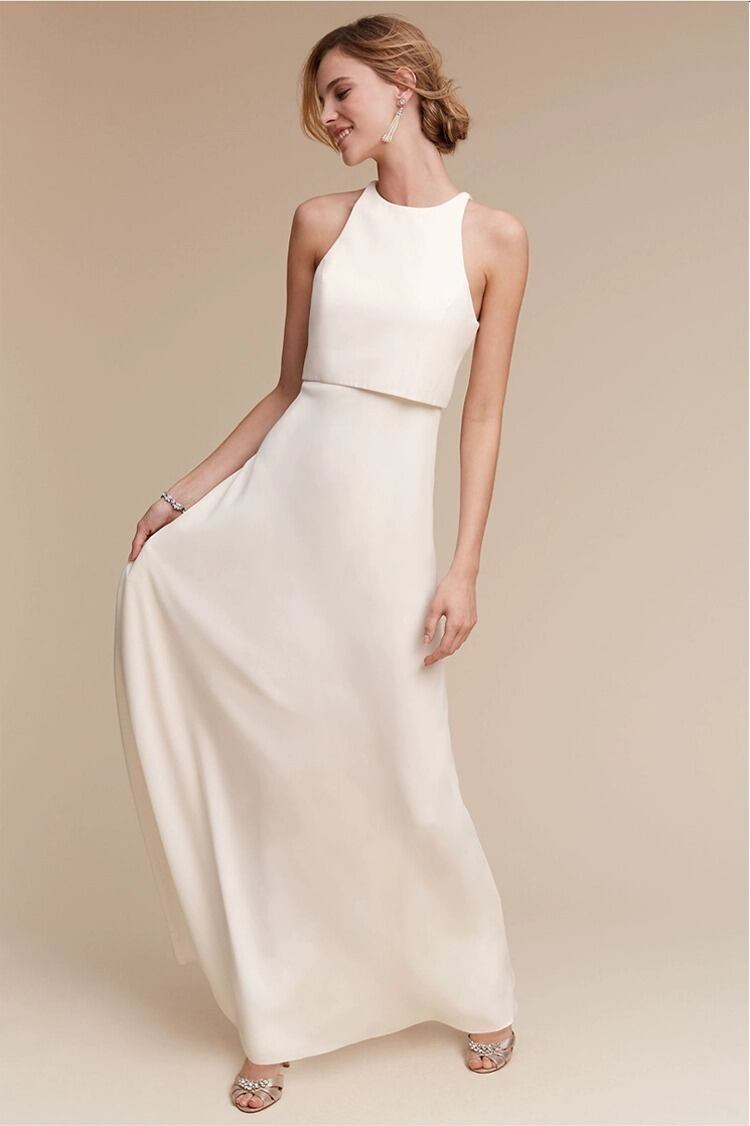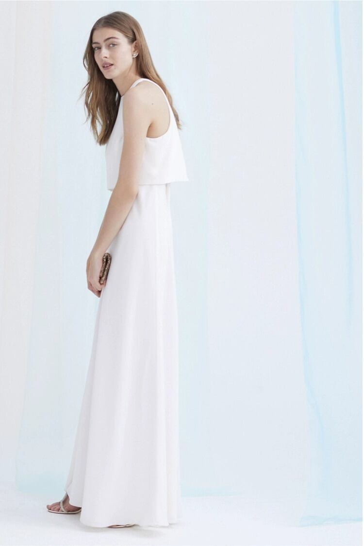 ハイウエストデザインが美しいシルエットを演出し、ノースリーブのバックシャンデザインが魅力的な一着に仕上げました。