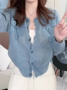 スカート トップス ニット カーディガン 上着 レギュラー丈 長袖 レギュラースリーブ クルーネック ボタンダウン ふわふわ 2way 3way 編み上げ ボタン 中厚手 ポリエステル かわいい 大人可愛い きれいめ シンプル 上品 無地 フラワー 春 ロングシーズン 授業参観 ミーティング ママ マタニティ 10代 20代 30代 40代 オフィス ビジネス OL デート お出かけ 女子会 コンサート お花見 合コン コンパ 重ね着 暖かい フリーサイズ ワンサイズ 水色