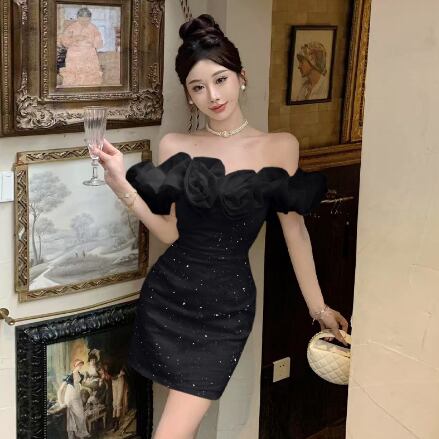 大人の女性にぴったりな「レディース スカート ワンピース ドレス」をご紹介します。華やかなオフショルダーデザインとフリルが特徴のこのワンピースは、特別な日のお出かけや結婚式、披露宴、発表会などに最適です。背中開きのタイトなシルエットが美しいラインを演出し、ハイウエストで脚長効果を狙えます!シンプルながら上品で、おしゃれなガーリースタイルを叶えてくれます。特に、夏のイベントにピッタリな薄手のポリエステル素材で、軽やかで快適に着こなせます。無地だからこそ、アクセサリーと合わせたコーディネートを楽しめます。