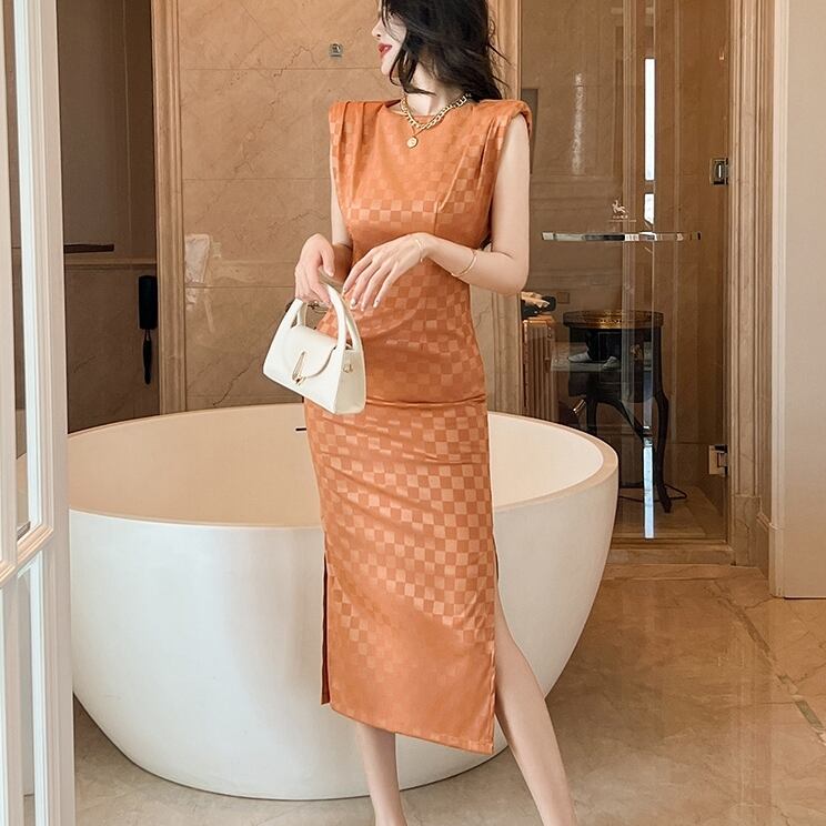 ワンピース ミモレ丈スカート ワンピースドレス ノースリーブ サイドスリット ラウンドネック ミモレ丈 ハイウエスト タイト 可愛い かわいい 大人可愛い きれいめ シンプル 上品 おしゃれ レトロ かっこいい カジュアル こなれ感 個性的 主役級 存在感 抜け感 ナチュラル ベーシック エレガント 無地 女性用 レディース デート お出かけ お泊まり 女子会 旅行 休日 カフェ ディナー ショッピング コンパ 普段使い デイリー 二次会 イベント 着回し 重ね着 脚長 美脚 S M L トレンド モテ