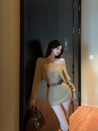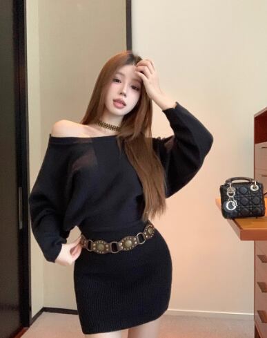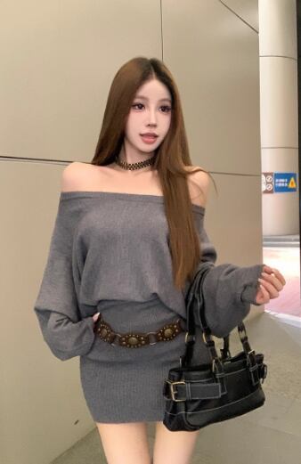 レディース スカート プルオーバー ニットワンピ タイトスカート ミニ 長袖 レギュラースリーブ オフショルダー タイト スリム 細身 ストレート 背中開き ベルト 中厚手 ベルト付き ビスコース繊維 大人可愛い きれいめ おしゃれ 存在感 ワイルド 無地 冬 ママ 10代 20代 学生 デート お出かけ お泊まり パーティー 女子会 コンサート ライブ 合コン コンパ 重ね着 美脚 脚長 S M L XL 黒 グレー カーキ アプリコット