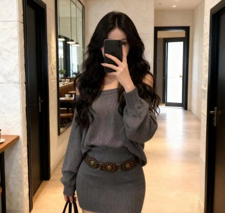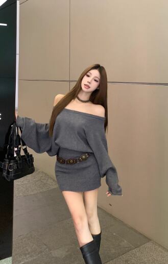 このニットワンピースは、タイトスカートとオフショルダーのデザインが特徴的で、大人可愛い雰囲気を演出します。レギュラースリーブと背中開きのディテールが、シンプルながらも存在感を引き立てる一着です!