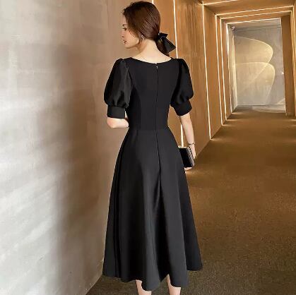 このレディースフレアドレスは、シンプルながらも上品で都会的なデザインが魅力のアイテムです。膝下の7分丈は、エレガントな印象を与えつつ、パフスリーブが特徴的で、個性的なアクセントを加えます。ラウンドネックの襟なしスタイルは、デコルテを美しく見せてくれるため、様々なシーンで洗練された雰囲気を演出します。