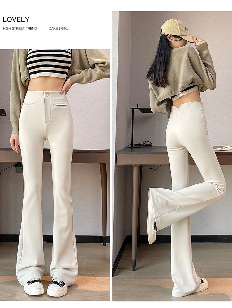 脚をすらりと見せるハイウエスト×裾ワイドのフレアパンツ。上品なシルエットが美脚効果を引き立て、通勤からデートまで幅広く活躍します。シンプルな無地デザインで、カジュアルにもきれいめにも合わせやすいのが魅力。