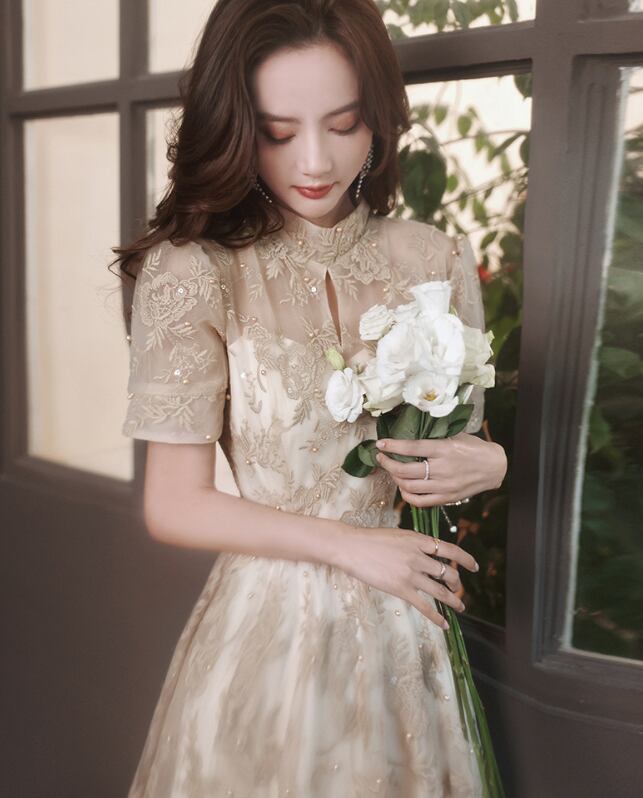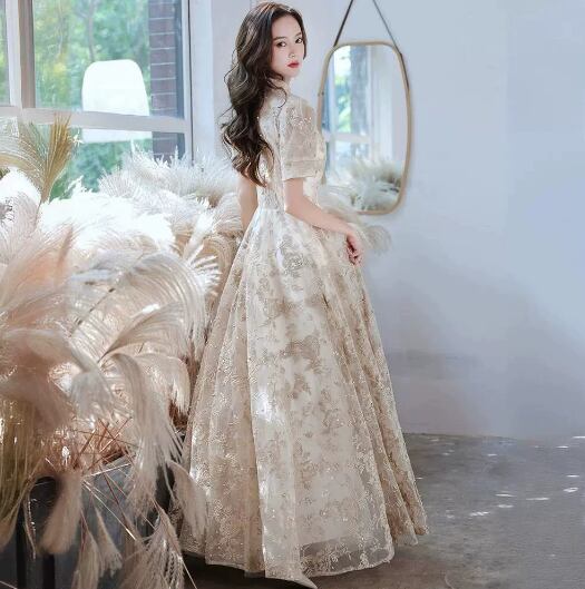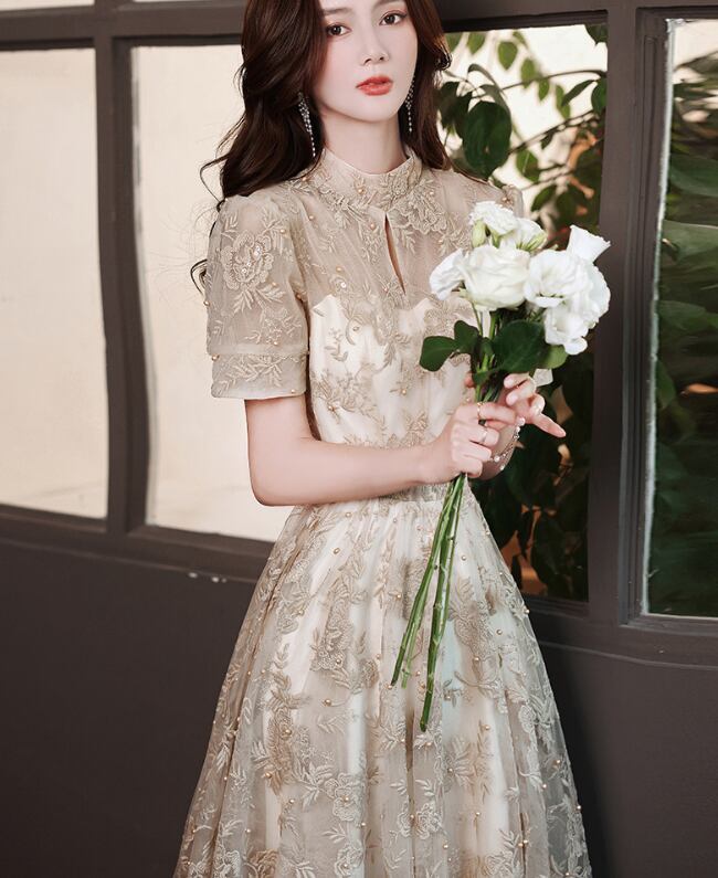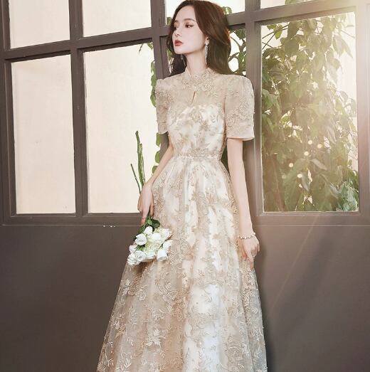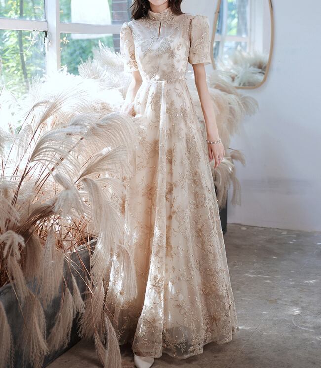 レディース ドレス パーティードレス ロング 半袖 ハイネック 襟付き ワイド フレア Aライン フェミニン 大人可愛い きれいめ 上品 おしゃれ エレガント 主役級 存在感 プリンセス 都会的 ラグジュアリー クラシカル ベーシック ロマンティック ナチュラル 総柄 春 夏 ロングシーズン パーティー イベント 発表会 コンサート モテ 清楚 トレンド 流行 インスタ映え 定番 スタイルアップ XS S M L XL 2XL サイズ豊富 カーキ ベーシックカラー 大人カラー