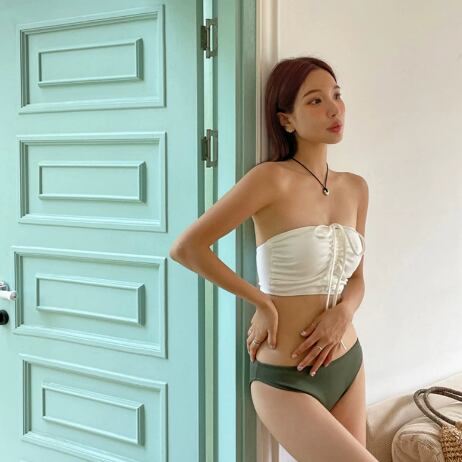 チューブトップデザインが魅せる、洗練されたセパレート水着。