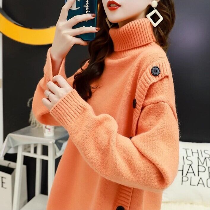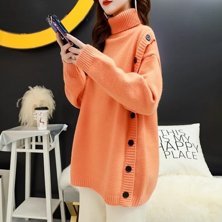 レディース トップス セーター 長袖 タートルネック ストレート ボタン 大人可愛い きれいめ おしゃれ かっこいい ラフ ガーリー クール ナチュラル 無地 秋 冬 通勤 デート お出かけ お泊まり イベント 旅行 レストラン 公園 女子会 休日 ホテル ショッピング コンサート ライブ カフェ 韓国 コーデ 楽ちん 暖かい プレゼント 普段使い 着回し モテ インスタ映え フリーサイズ ワンサイズ ブラック グレー ベージュ オレンジ