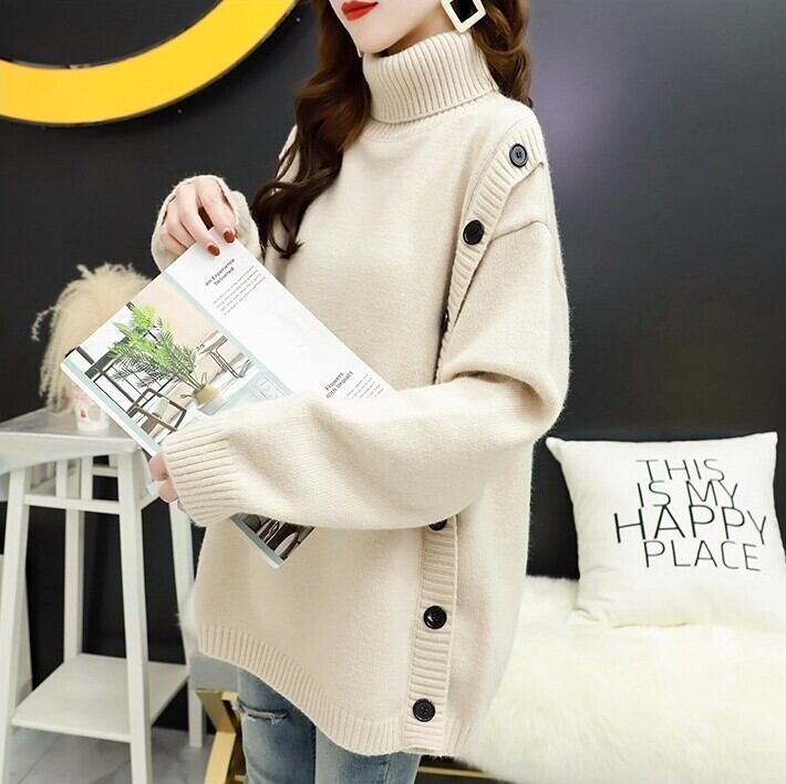 おしゃれで大人可愛い、秋冬にぴったりなタートルネックセーター!長袖デザインが暖かさを確保しながらも、ストレートシルエットでスタイリッシュさを演出します。ボタンデザインが程よいアクセントとなり、普段使いから特別な日まで幅広く活躍します。通勤やデート、女子会など、さまざまなシーンにふさわしい一品です。
