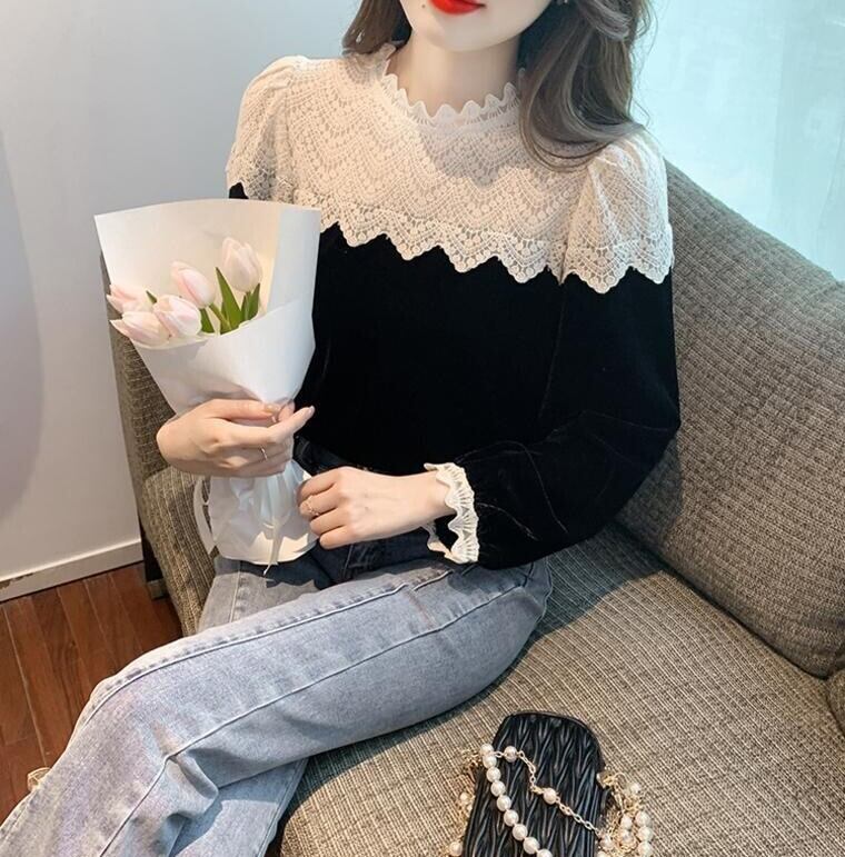 レディース トップス カットソー 長袖 フリル袖 ハイネック フェミニン レース 切り替えデザイン バイカラー かわいい 大人可愛い きれいめ カジュアル おしゃれ ガーリー キュート ベーシック ナチュラル 秋 冬 ママ 通勤 学生 学校 通学 デート お出かけ 旅行 レストラン 女子会 休日 ホテル ショッピング カフェ モノトーン 普段使い 着回し モテ 清楚 S M L XL 2XL 大きいサイズ ブラック ベーシックカラー 大人カラー