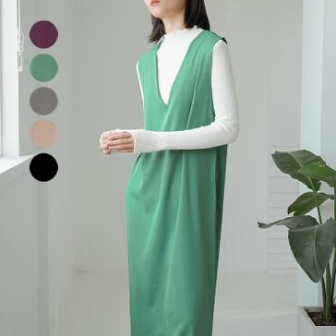 レディース スカート つなぎ ジャンパースカート ロング ミディ ノースリーブ Vネック Aライン スリット ハイウエスト 薄手 ポリエステル かわいい シンプル 上品 ベーシック 無地 秋 ママ マタニティ 10代 20代 30代 お泊まり リゾート 海 女子会 休日 重ね着 楽ちん 体型カバー 美脚 脚長 普段使い 着回し 清楚 定番 M L ゆったり 黒 グレー カーキ ブルー ワインレッド