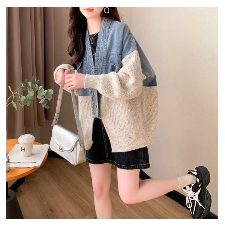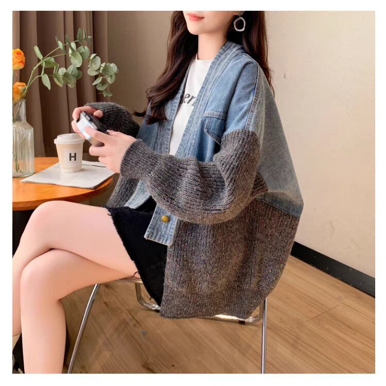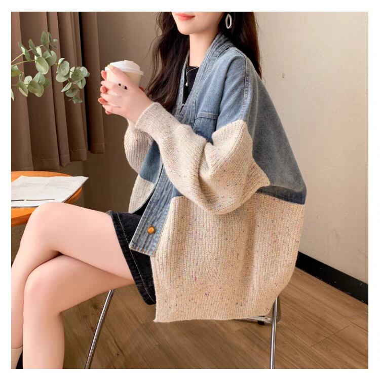 ふんわりとしたニットにデニム切り替えをドッキングした、こなれ感あふれるレディースカーディガンです。