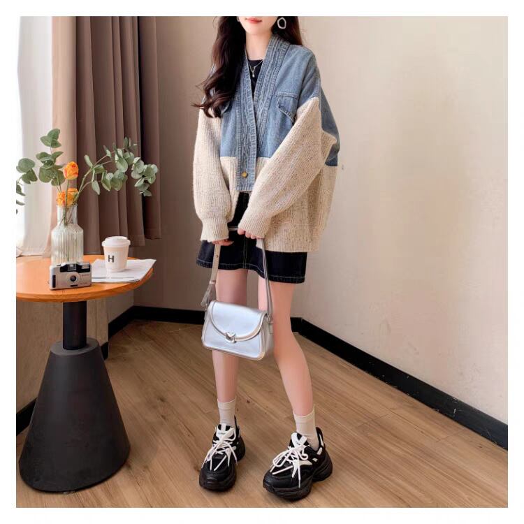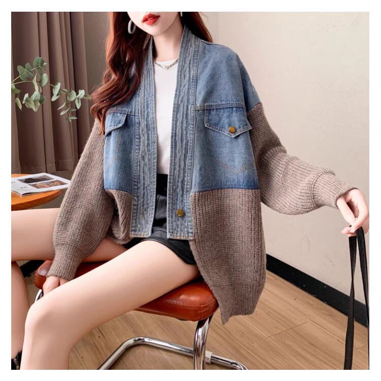 レディース ニット カーディガン デニム 羽織 前開き 長袖 ドルマンスリーブ Vネック ワイド 切り替え ドッキング オーバーサイズ かわいい カジュアル おしゃれ こなれ感 ガーリー ルーズ キュート ベーシック ナチュラル 無地 春 秋 ママ 通勤 学生 学校 通学 デート お出かけ 旅行 公園 女子会 休日 ショッピング お花見 カフェ 体型カバー 普段使い 着回し ゆったり ゆる フリーサイズ ダークグレー オフホワイト カーキ ベーシックカラー 春カラー 秋カラー