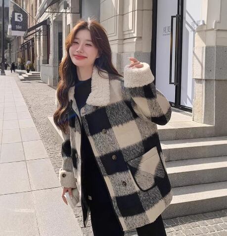 レディース コート アウター 上着 ウール 前開き チェックコート レギュラー丈 襟付き ふわふわ ふっくら 前開き ウール スパンデックス かわいい 大人可愛い きれいめ おしゃれ こなれ感 ラフ チェック 秋 冬 ママ 10代 20代 30代 学生 学校 通学 デート お出かけ モノトーン 暖かい 防寒 モテ トレンド 流行 M L XL 2XL 3XL 4XL ホワイト 黒 白黒