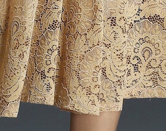 柔らかなフレアシルエットと膝下のミモレ丈が上品に揺れ、角襟やレース、ボタン使いがレトロな可愛さを引き立てる一着です。