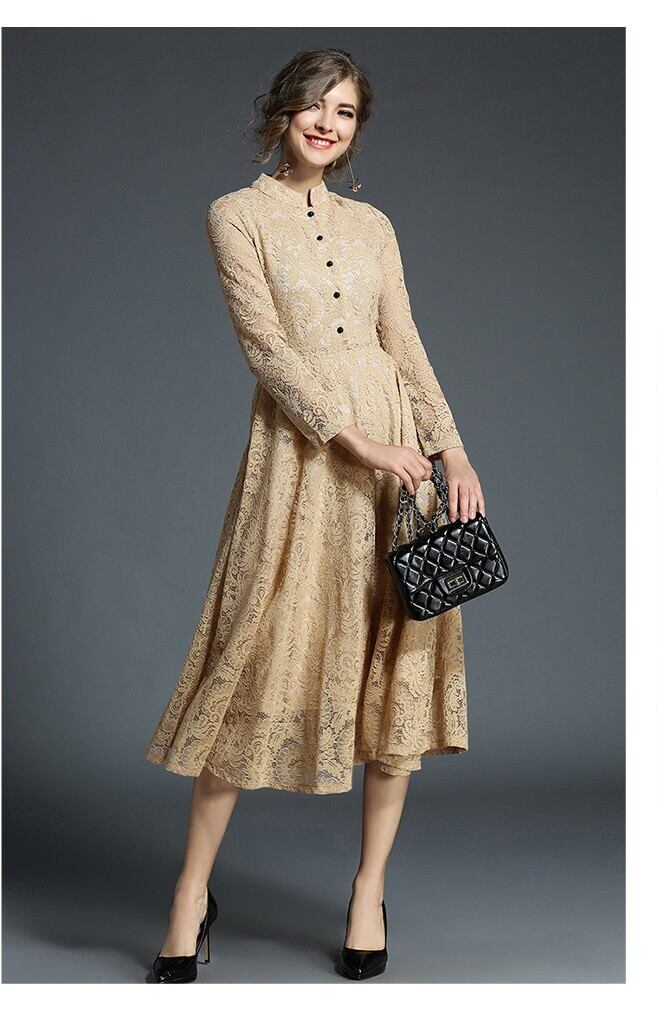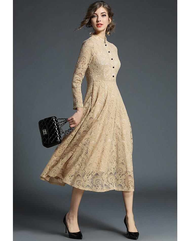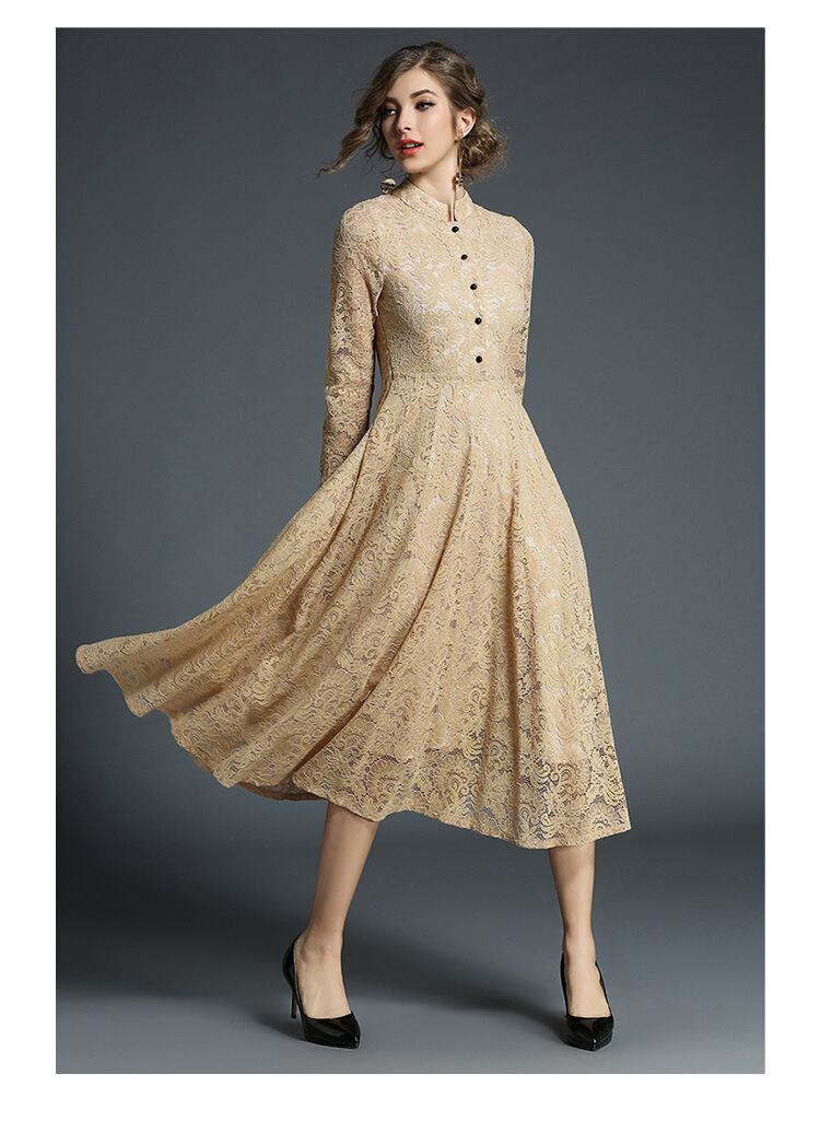 レディース ワンピース 膝下 ミモレ 長袖 襟付き 角襟 フレア Aライン フェミニン レース ボタン ギャザー かわいい 大人可愛い きれいめ おしゃれ レトロ ガーリー キュート ナチュラル スタイリッシュ 春 秋 ママ 通勤 学生 学校 通学 デート お出かけ 旅行 レストラン 女子会 休日 ホテル ショッピング カフェ 普段使い 着回し S M L XL 2XL 3XL 4XL 5XL 大きいサイズ ブラック カーキ ベーシックカラー 春カラー 秋カラー