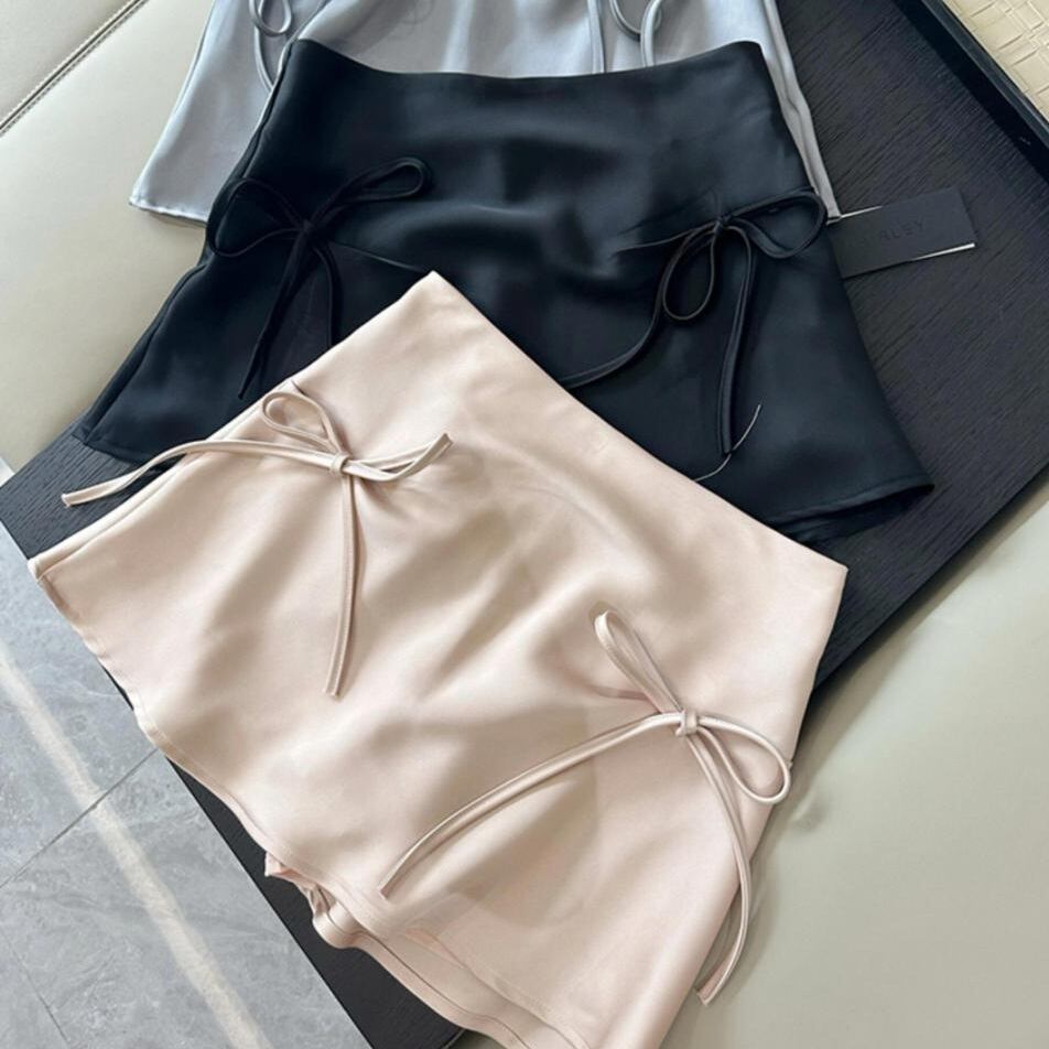 ボトムス スカート ミニスカート ハイウエスト Aライン ミニ丈 りぼん リボン かわいい 可愛い 大人可愛い きれいめ シンプル 上品 レトロ おしゃれ かっこいい カジュアル こなれ感 個性的 主役級 存在感 抜け感 春 夏 ベーシック ナチュラル キュート フェミニン ガーリー 無地 女性用 レディース ママ OL 通勤 学生 通学 デート お出かけ お泊まり 女子会 旅行 休日 カフェ ショッピング イベント コンパ 普段使い デイリー 着回し 脚長 美脚 S M L XL トレンド モテ