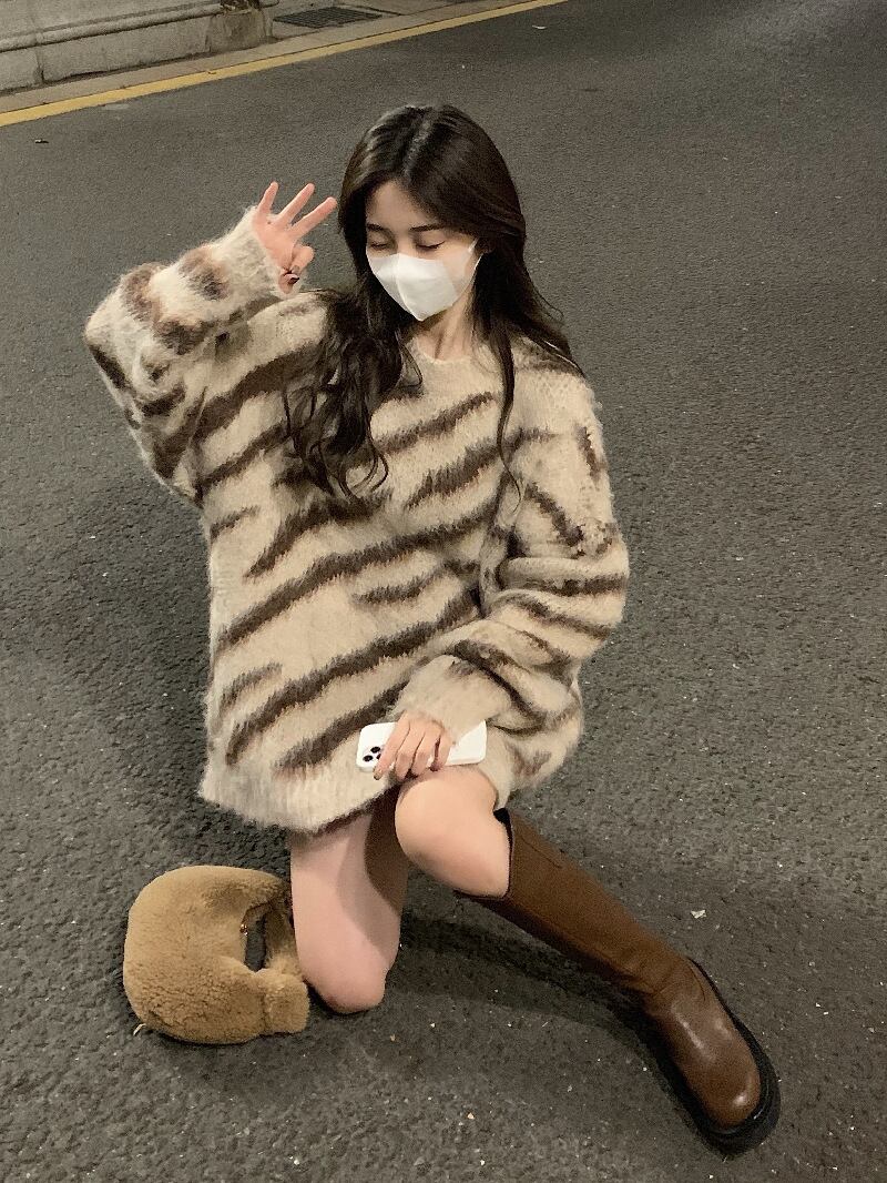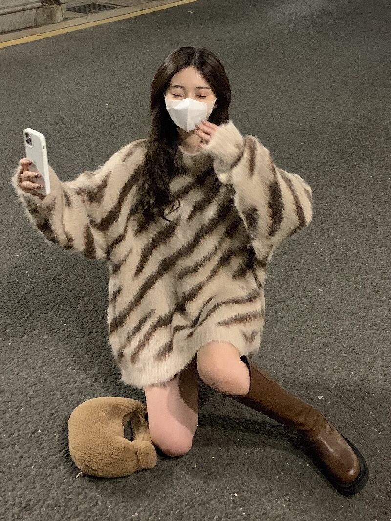 レディース ニット セーター プルオーバー ミディアム 長袖 ドロップショルダー クルーネック ワイド オーバーサイズ もこもこ ふわふわ かわいい 大人可愛い カジュアル おしゃれ かっこいい こなれ感 存在感 キュート 抜け感 リラックス セブラ柄 アニマル柄 秋 冬 ママ 学生 学校 通学 デート お出かけ 旅行 公園 女子会 休日 ショッピング カフェ ランチ お家時間 普段使い 体型カバー ゆったり ゆる フリーサイズ グレー 大人カラー 秋カラー キャメル