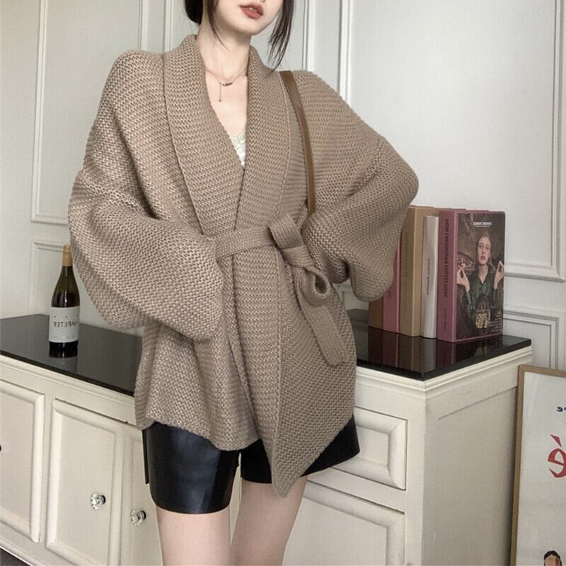 ガウンカーディガン レディース ニット カーディガン 羽織 前開き 長袖 萌袖 Vネック ワイド オーバーサイズ ベルト ウエストマーク かわいい 大人可愛い きれいめ シンプル カジュアル おしゃれ ガーリー ルーズ キュート ナチュラル 無地 春 秋 冬 ママ 通勤 学生 学校 通学 デート お出かけ 旅行 女子会 休日 ショッピング お花見 カフェ 体型カバー 普段使い 着回し ゆったり ゆる フリーサイズ ブラック カーキ ベーシックカラー 大人カラー 春カラー 秋カラー