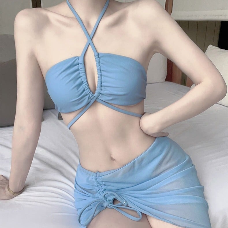 水着 ビキニ レディース パッド付き ノースリーブ セット スリーピース 大人可愛い きれいめ 華やか 大人っぽい おしゃれ お洒落 ガーリー クール かっこいい セクシー 無地 リゾート 旅行 温泉 プール 夏 海 ビーチ 美脚 韓国 高見え 格上げ モテ 背中見せ インスタ映え 大きい S M L XL ブラック ブルー