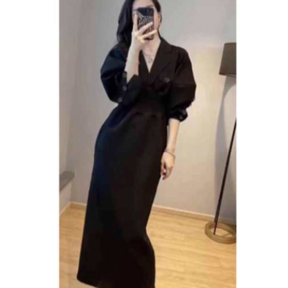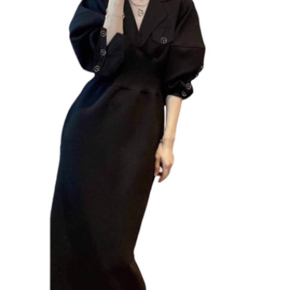 このワンピースは、Vネックデザインと長袖が特徴で、セミフレアのシルエットが女性らしさを引き立てます。細身のラインが美しく、シンプルながらも洗練された印象を与え、多くのコーディネートにマッチ。無地のスタイルは、カジュアルからきれいめ、さらにはガーリーな雰囲気まで幅広く対応可能です。