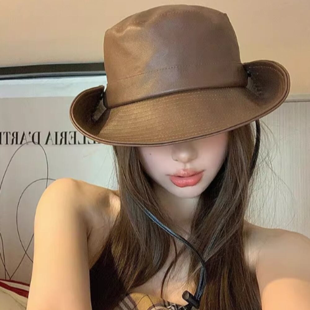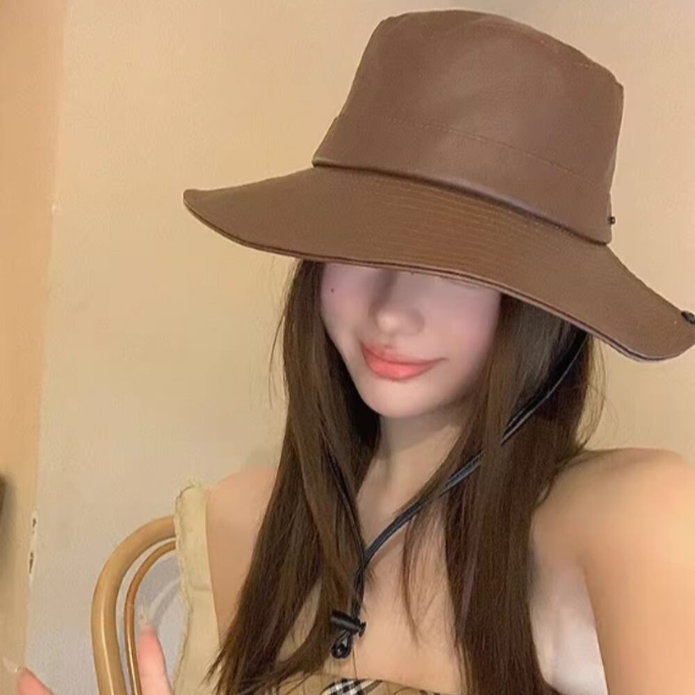 帽子 ハット レディース つば広 日焼け防止 日除け 紫外線カット フェイクレザー コンパクト あご紐付き 大人可愛い きれいめ シンプル カジュアル 上品 お洒落 レトロ こなれ感 キュート ガーリー クラシック 無地 お出かけ 運動 アウトドア イベント 旅行 海 プール お買い物 女子会 スポーツ 休日 プール ランチ会 ライブ フェス ガーデニング 普段使い コーデ スタイル 春 夏 秋 ロングシーズン キャメル ブラック ブラウン フリーサイズ