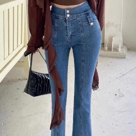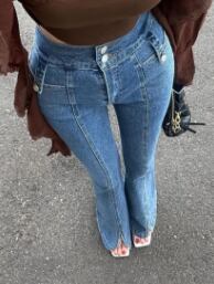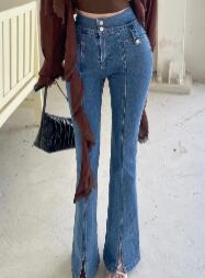 レディース パンツ デニム デニムパンツ マイクロフレア フレアパンツ 丈長 セミフレア ブーツカット スリット ファスナー ポケット ハイウエスト ボタン デニム 中厚手 コットン かわいい 大人可愛い きれいめ シンプル カジュアル おしゃれ かっこいい ラフ ボーイッシュ 無地 秋 授業参観 ママ 10代 20代 30代 40代 学生 通学 デート お出かけ アウトドア キャンプ 海 プール ビーチ 公園 女子会 ショッピング コンサート ライブ 普段使い 着回し S M L 黒 緑