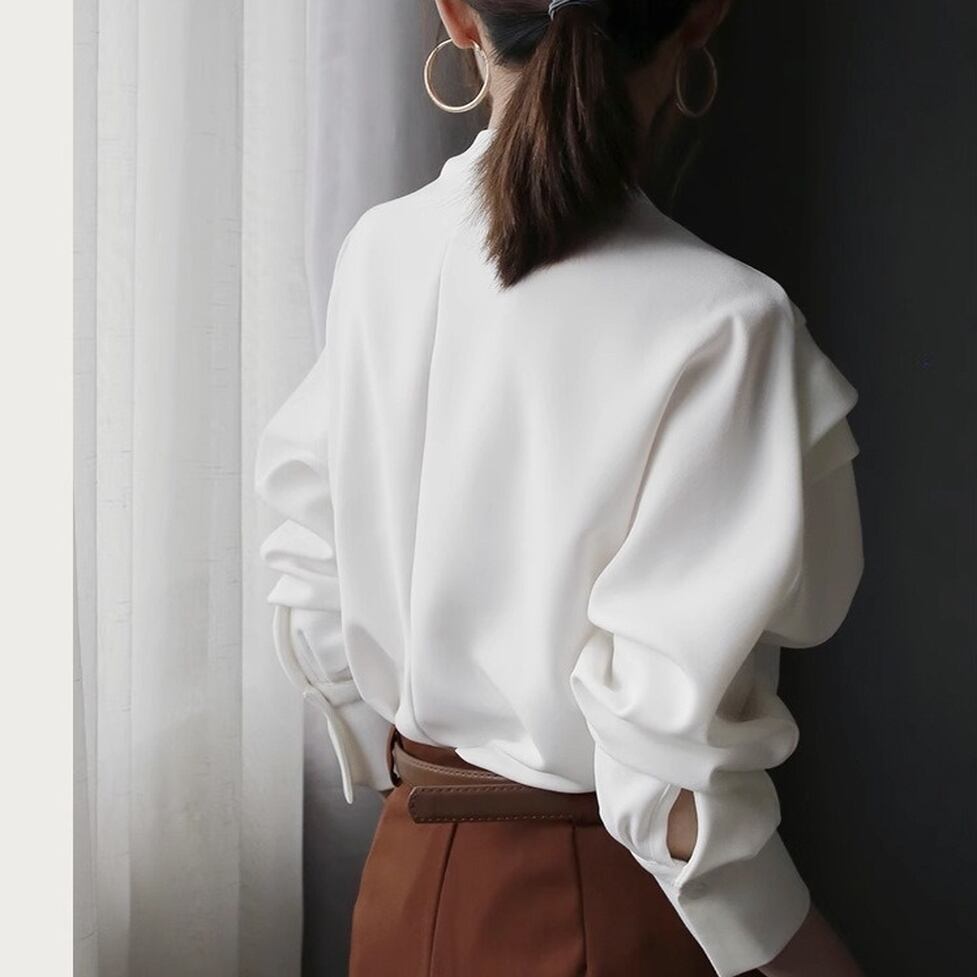 ブラウス トップス タックシャツ タックショルダートップス クルーネック ドロップショルダー 長袖 無地 レディース かわいい 大人可愛い おしゃれ ガーリー エレガント キュート きれいめ 上品 お出かけ ショッピング 休日 通勤 通学 デート 女子会 イベント 旅行 体型カバー ゆったり スタイルUP デイリー 万能 普段使い フェミニン シンプル クラシカル ラグジュアリー カジュアル スタイリッシュ 高見え 鮮度アップ