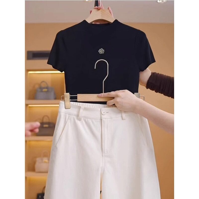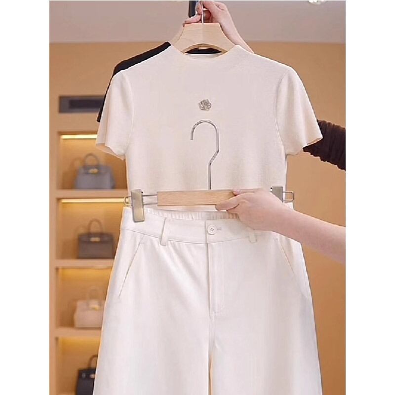 大人可愛い雰囲気を演出する、ショート半袖ニットトップスです。ラウンドネックのデザインが首元をすっきり見せ、おしゃれでクールな印象を与えます。無地のシンプルさが様々なスタイルに合わせやすく、春夏の通勤やデート、休日のお出かけなど、幅広いシーンで活躍します。また、肩のラインが程よくゆったりとしたシルエットは、体型カバーも叶えつつ、こなれた印象を持たせてくれます。
