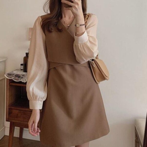 ワンピース ミニワンピース 長袖 シースルー Vネック ハイウエスト 重ね着 フェイクツーピース ミニ丈 可愛い かわいい 大人可愛い きれいめ シンプル 上品 おしゃれ レトロ かっこいい カジュアル こなれ感 個性的 主役級 存在感 抜け感 春 夏 ベーシック ナチュラル エレガント 無地 女性用 レディース OL 通勤 オフィス 学生 通学 デート お出かけ お泊まり 女子会 旅行 カフェ ショッピング コンパ 普段使い デイリー イベント 着回し 重ね着 美脚 S M L XL 2XL トレンド