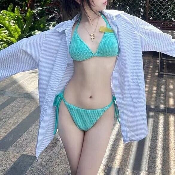 この3点セット水着は、大人可愛いビキニスタイルを求めるあなたにぴったり!三角ビキニは華やかさとシンプルさを兼ね備え、パッド付きで安心のサポート力を実現。ノースリーブのスリーピースが、リラックス感とおしゃれを同時に演出します。