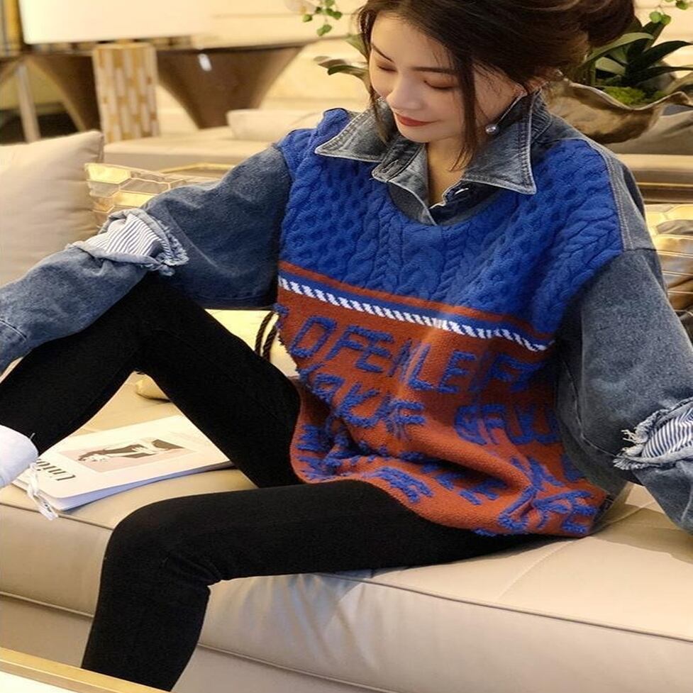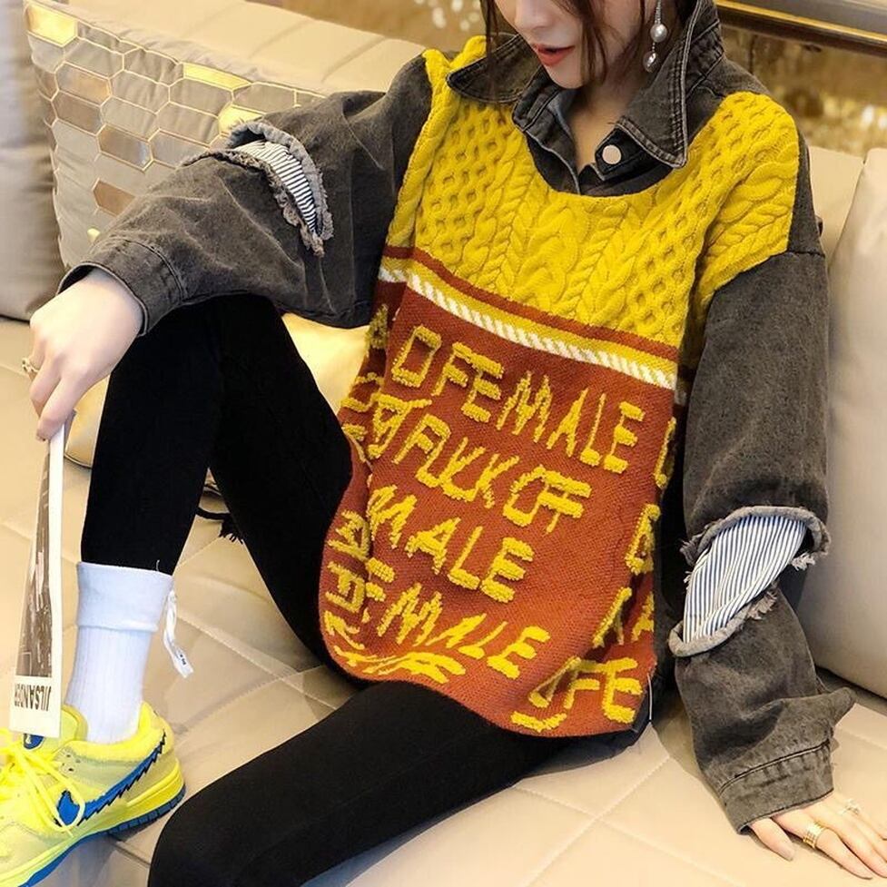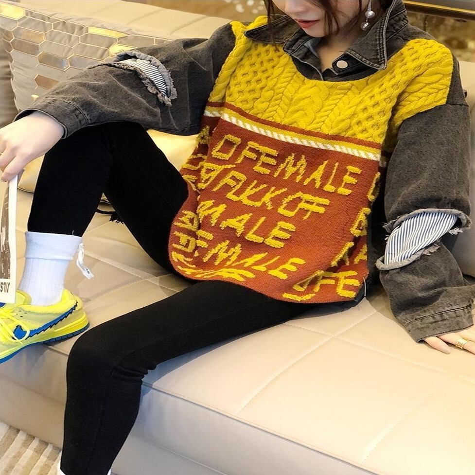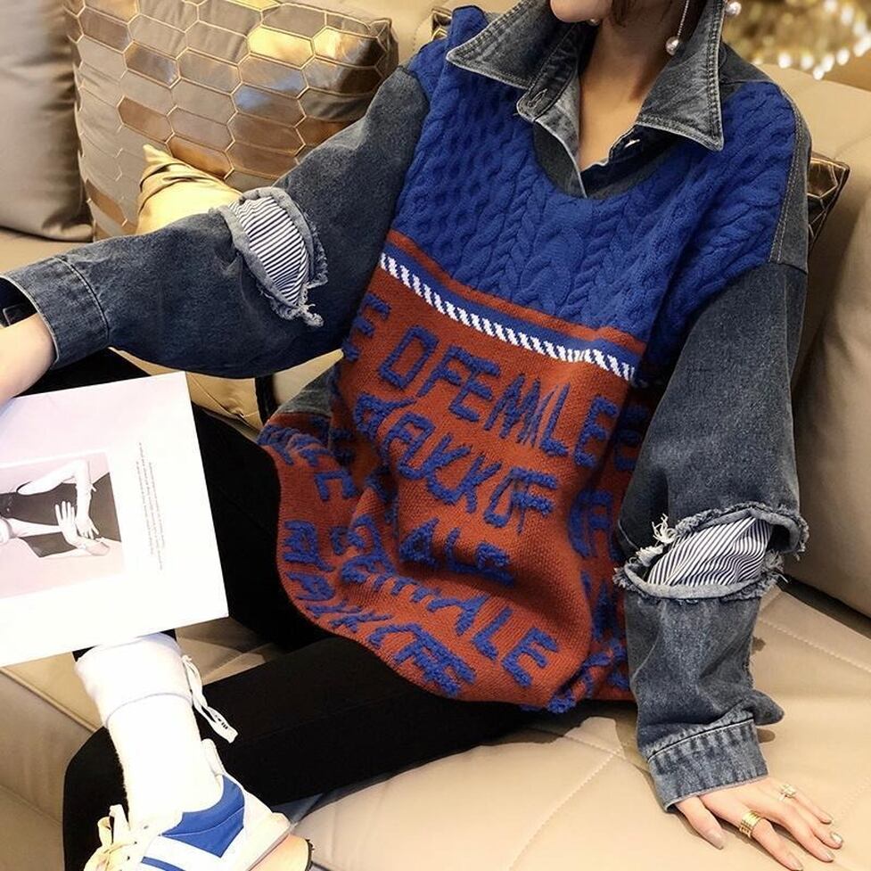 ニット トップス プルオーバー シャツ ドッキングニットプルオーバー 切り替えニットシャツ 異素材ニット 襟付き デニム ケーブル編み ドロップショルダー 長袖 ロゴ オーバーサイズ レディース かわいい 大人可愛い おしゃれ ガーリー エレガント キュート きれいめ 上品 お出かけ ショッピング 休日 通勤 通学 デート 女子会 イベント 旅行 体型カバー ゆったり スタイルUP デイリー 万能 普段使い フェミニン カジュアル マニッシュ アクティブ レトロ 鮮度アップ