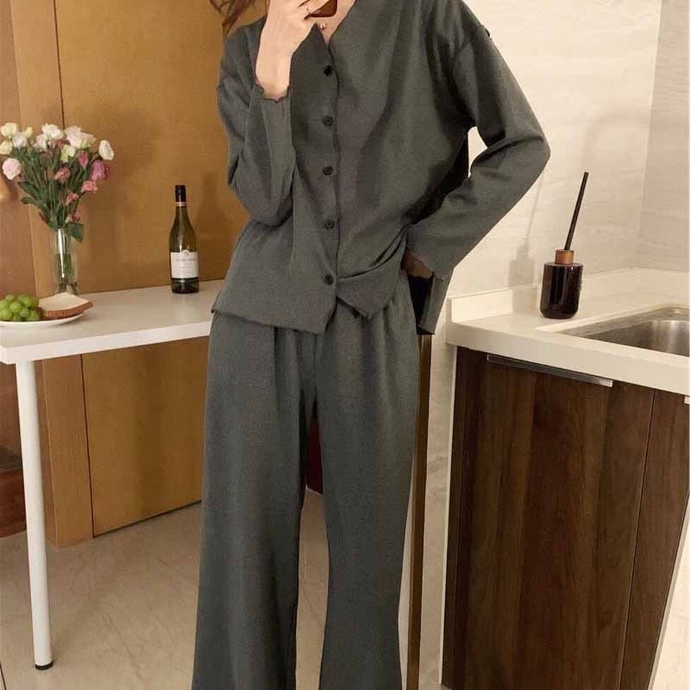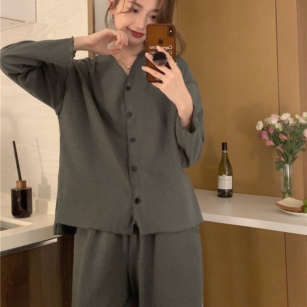 セットアップ ツーピース 2点セット 上下セット パンツセットアップ ルームウェアパンツセット Vネック 7分袖 前ボタン ワイドパンツ 無地 カットソー ドロップショルダー レディース かわいい 大人可愛い おしゃれ ガーリー エレガント キュート きれいめ 上品 お出かけ ショッピング 休日 デート 女子会 イベント 旅行 体型カバー ゆったり スタイルUP デイリー 万能 普段使い フェミニン シンプル カジュアル 鮮度アップ