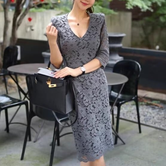 レディース ワンピース ミディアム 長袖 Vネック ファスナー 大人可愛い きれいめ 上品 おしゃれ かっこいい ガーリー クール エレガント 存在感 フォーマル 都会的 セクシー 花柄 春 夏 秋 冬 オールシーズン ロングシーズン シーズンレス デート お出かけ パーティー イベント 旅行 レストラン 女子会 ホテル 韓国 コーデ 楽ちん プレゼント 美脚 モテ インスタ映え S M L XL 大きいサイズ グレー ピンク