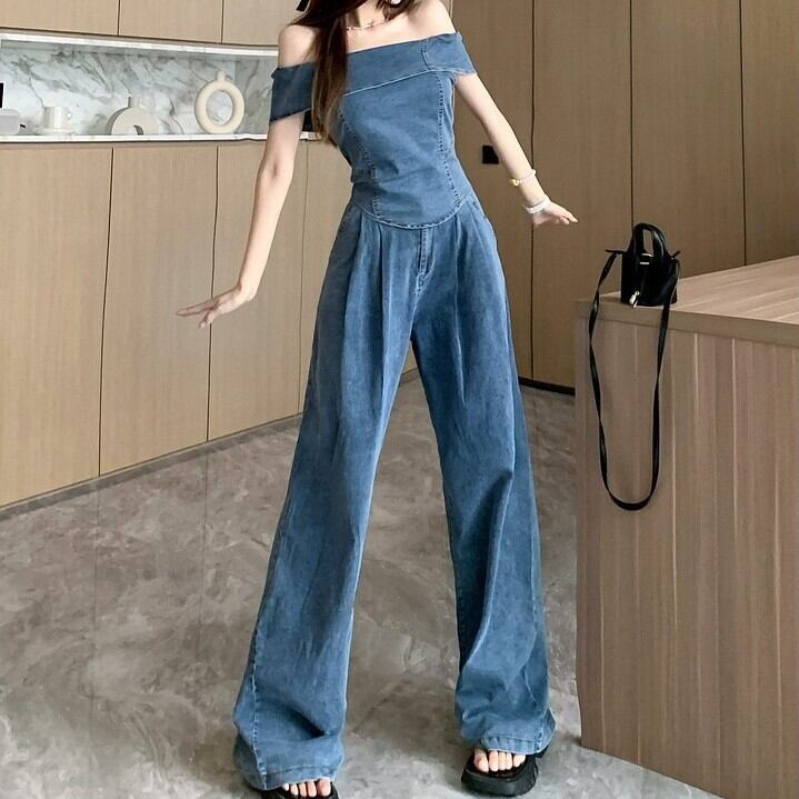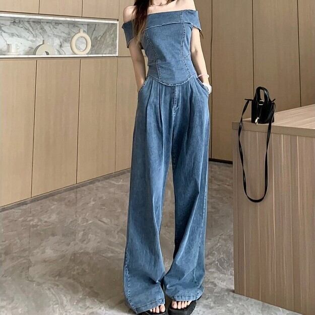 2点セット レディース トップス ボトムス シャツ デニム デニムパンツ ノースリーブ オフショルダー 大人可愛い カジュアル おしゃれ かっこいい レトロ ガーリー クール 都会的 無地 春 夏 通勤 デート お出かけ お泊まり アウトドア イベント 旅行 レストラン 公園 女子会 休日 ホテル ショッピング コンサート ライブ カフェ 韓国 コーデ 楽ちん プレゼント 普段使い 着回し モテ インスタ映え S M L ブルー ライトブルー