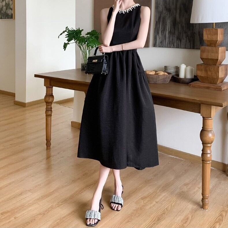 ドレス ワンピース ウェディング パーティー 結婚式 二次会 披露宴 演奏会 発表会 ステージ 舞台 フォーマル 謝恩会 ロング ノースリーブ ラウンドネック プリンセスライン きれいめ 大人可愛い 上品 おしゃれ かっこいい ガーリー クール エレガント 存在感 クラシック シック 無地 イベント ホテル レストラン 韓国 高見え 格上げ 女子会 春 夏 秋 冬 シーズンレス 大きい S M L XL ブラック