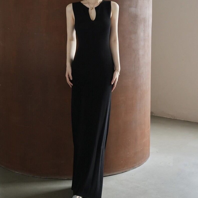 レディース ワンピース ロング ノースリーブ Uネック スリム ハイウエスト 大人可愛い きれいめ おしゃれ かっこいい ガーリー クール ナチュラル 無地 春 夏 通勤 デート お出かけ お泊まり イベント リゾート 旅行 海 プール レストラン ビーチ 公園 女子会 休日 ホテル ショッピング コンサート ライブ カフェ 韓国 コーデ 楽ちん プレゼント 脚長 普段使い 着回し モテ インスタ映え S M L ブラック アプリコット ライトブルー