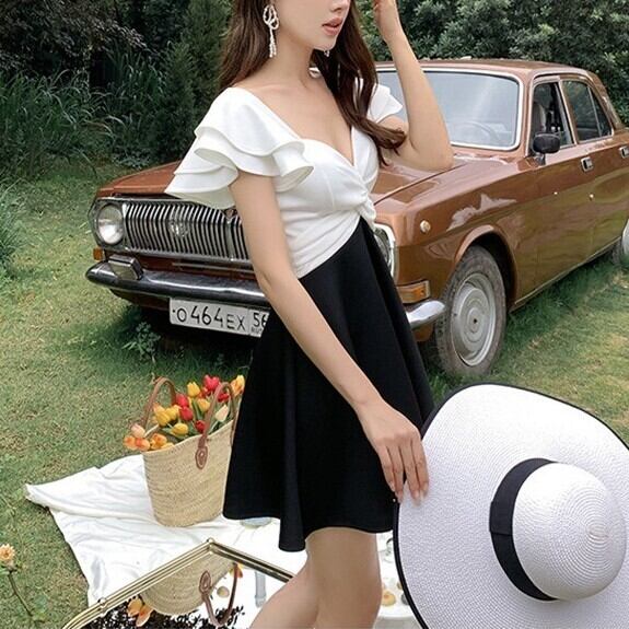 水着 レディース ワンピース スカパン 半袖 ハイウエスト 大人可愛い きれいめ 華やか 大人っぽい おしゃれ お洒落 ガーリー クール かっこいい セクシー 無地 リゾート 旅行 温泉 プール 夏 海 ビーチ 美脚 脚長 韓国 高見え 格上げ モテ 背中見せ インスタ映え 大きい M L XL ホワイト