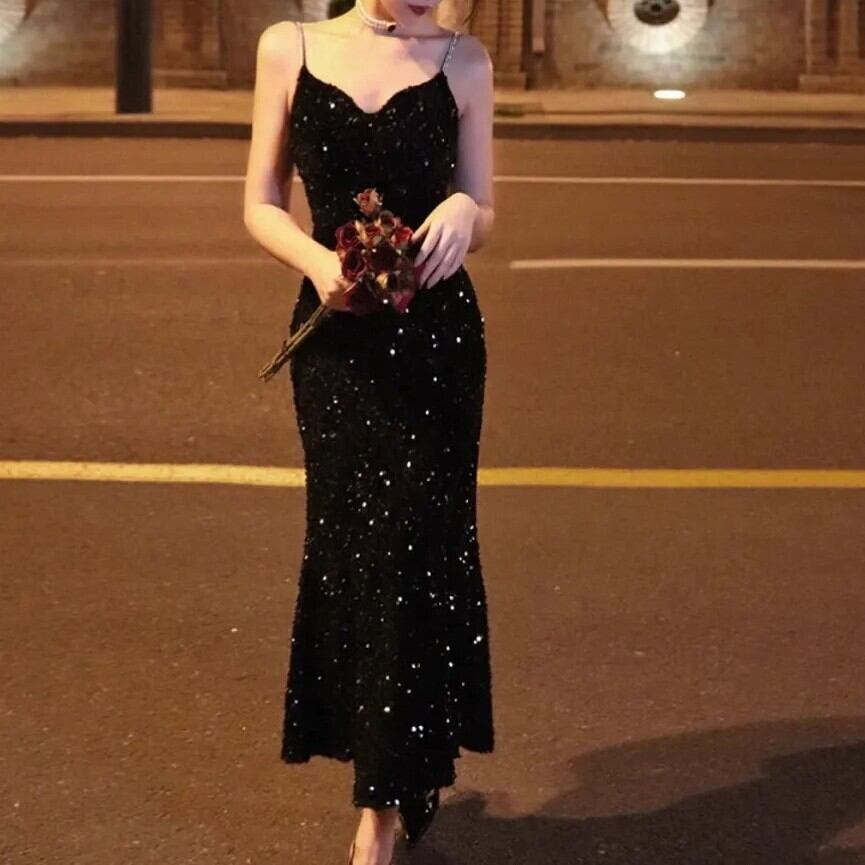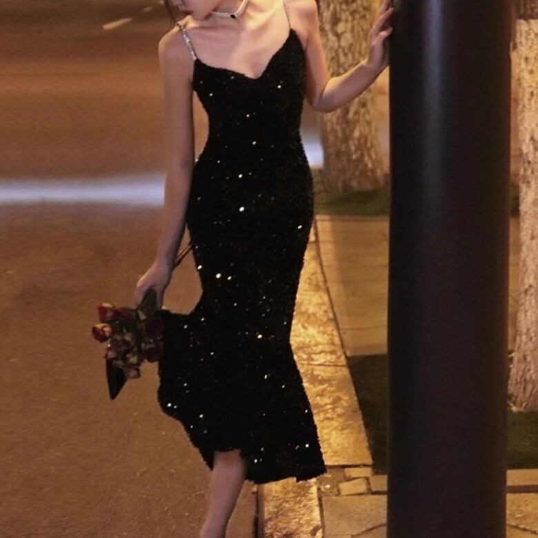 ドレス ワンピース ウェディング パーティー 結婚式 二次会 披露宴 演奏会 発表会 ステージ 舞台 フォーマル 謝恩会 ラウンジ クラブ ロング ノースリーブ Vネック スリム イブニング ファスナー スパンコール きれいめ 大人可愛い 上品 おしゃれ かっこいい ガーリー クール エレガント 主役級 存在感 ゴージャス セクシー 華やか 無地 イベント ホテル レストラン 韓国 高見え 格上げ 女子会 春 夏 秋 冬 シーズンレス 大きい S M L XL ブラック