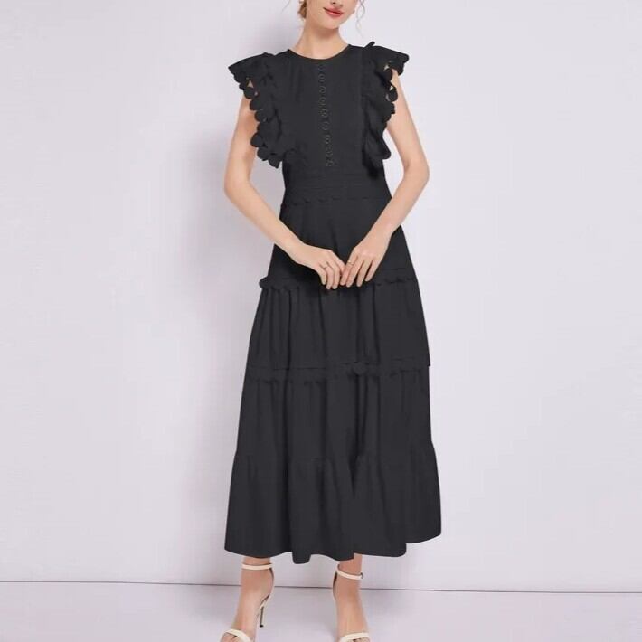 このレディースワンピースは、ロング丈で半袖、ラウンドネックデザインが特徴的な、大人可愛いアイテムです!フリルのディテールが華やかさをプラスし、きれいめでありながらおしゃれでかっこいい印象を与えます。春夏にぴったりで、通勤やデート、お出かけにも最適です。普段使いから特別なイベント、リゾートシーンやビーチ、カフェ、女子会などさまざまなシーンで活躍する1着です!