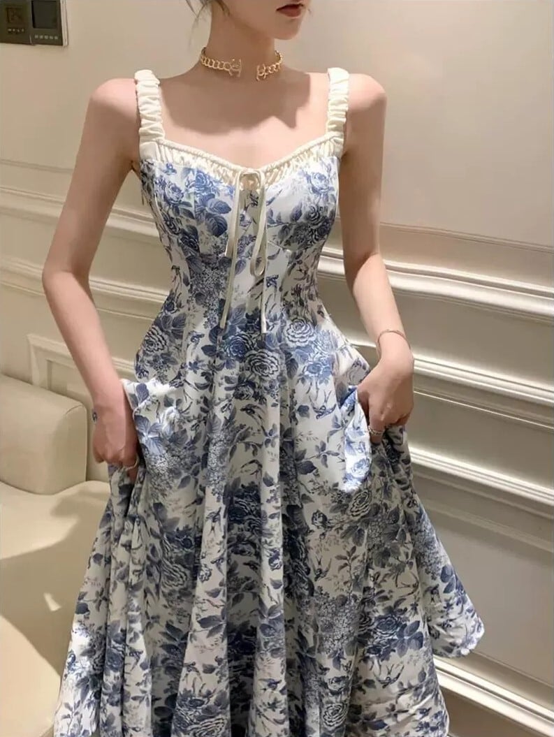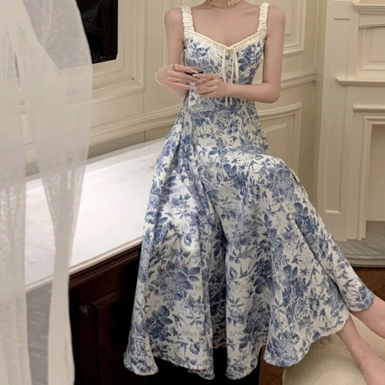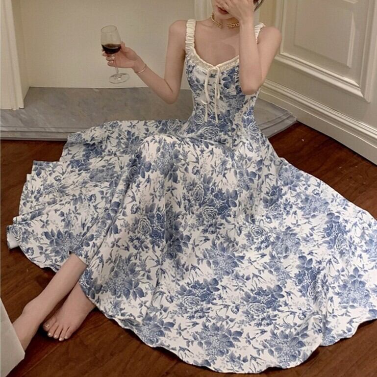 レディース ワンピース キャミワンピ ロング ノースリーブ Vネック ハイウエスト 大人可愛い きれいめ おしゃれ かっこいい レトロ ガーリー クール 都会的 ロマンティック 花柄 春 夏 通勤 デート お出かけ お泊まり パーティー イベント リゾート 旅行 海 プール レストラン ビーチ 女子会 休日 ホテル ショッピング コンサート ライブ カフェ 韓国 コーデ 楽ちん プレゼント 脚長 普段使い 着回し モテ インスタ映え S M L XL 大きいサイズ ブルー