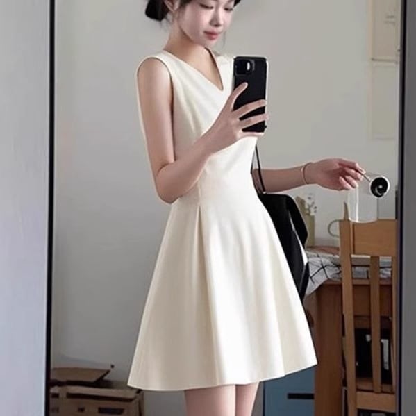 ワンピース ミニワンピース ノースリーブワンピース ハイウエスト Vネック Aライン フレアスカート 可愛い かわいい 大人可愛い きれいめ シンプル 上品 おしゃれ レトロ かっこいい カジュアル こなれ感 個性的 主役級 存在感 抜け感 オールシーズン ベーシック ナチュラル エレガント フェミニン ガーリー 無地 女性用 レディース ママ OL デート お出かけ お泊まり 女子会 旅行 カフェ ショッピング コンパ パーティー 二次会 普段使い デイリー イベント 着回し S M L トレンド